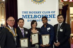 The Rotary Club of Melbourne held its annual Training Awards day on the 28th of September 2011. Each student was presented with a cheque for $1,000 and a club certificate of achievement. All three spoke to the club about their personal training experiences and their future aspirations. Traditionally, one student is given further recognition by being nominated for the “Frank Newman Award” this award recognises Club member Frank’s role in promoting and supporting apprenticeships and training nationally and is presented to the student the Vocational Services Committee considers the outstanding candidate. Sadly, Frank who has always been available and pleased to present this award passed away in May of 2009. A brief summary of the successful candidates follows:
